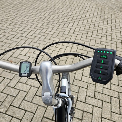 De Van Raam Balance is een lage instap en lage zit fiets. Je kunt altijd met de voeten aan de grond en toch je benen strekken met trappen. Deze Balance is door ons in juni 2021 nieuw geleverd met originele Silent trapondersteuning met 3 standen en wegrij functie. De accu van 13,6Ah is getest op 96% en is gemonteerd aan zijkant bagagedrager. Verder heeft deze Balance een framemaat 51 cm, 8 versnellingen , hydraulische handremmen, dubbele tas en een spiegel.