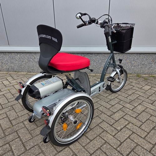 De Easy Go van Van Raam is een combinatie van driewielfiets en scootmobiel. Zo kun je met of zonder ondersteuning gewoon fietsen. Maar je kunt ook overschakelen naar scootmobiel en met de duimgashendel verder rijden zonder te trappen. Deze Easy Go is voorzien van een grote 24Ah accu, goed voor de nodige kilometers. De snelheid is 15 km/h.