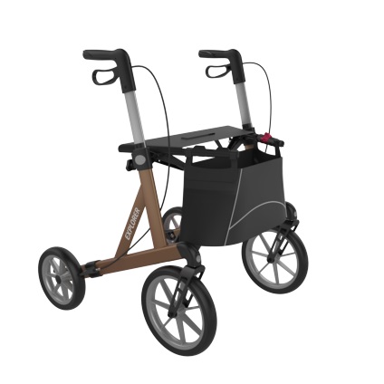 De Explorer is eenvoudig in te klappen en blijft gesloten door het eenvoudige vergrendelingssysteem welke tevens dient als ergonomisch gevormd handvat waarmee de rollator opgepakt kan worden.