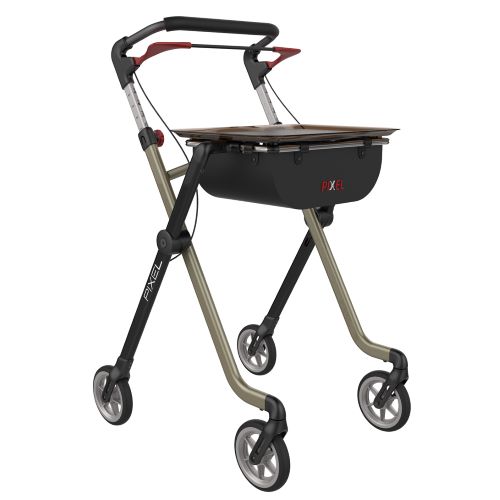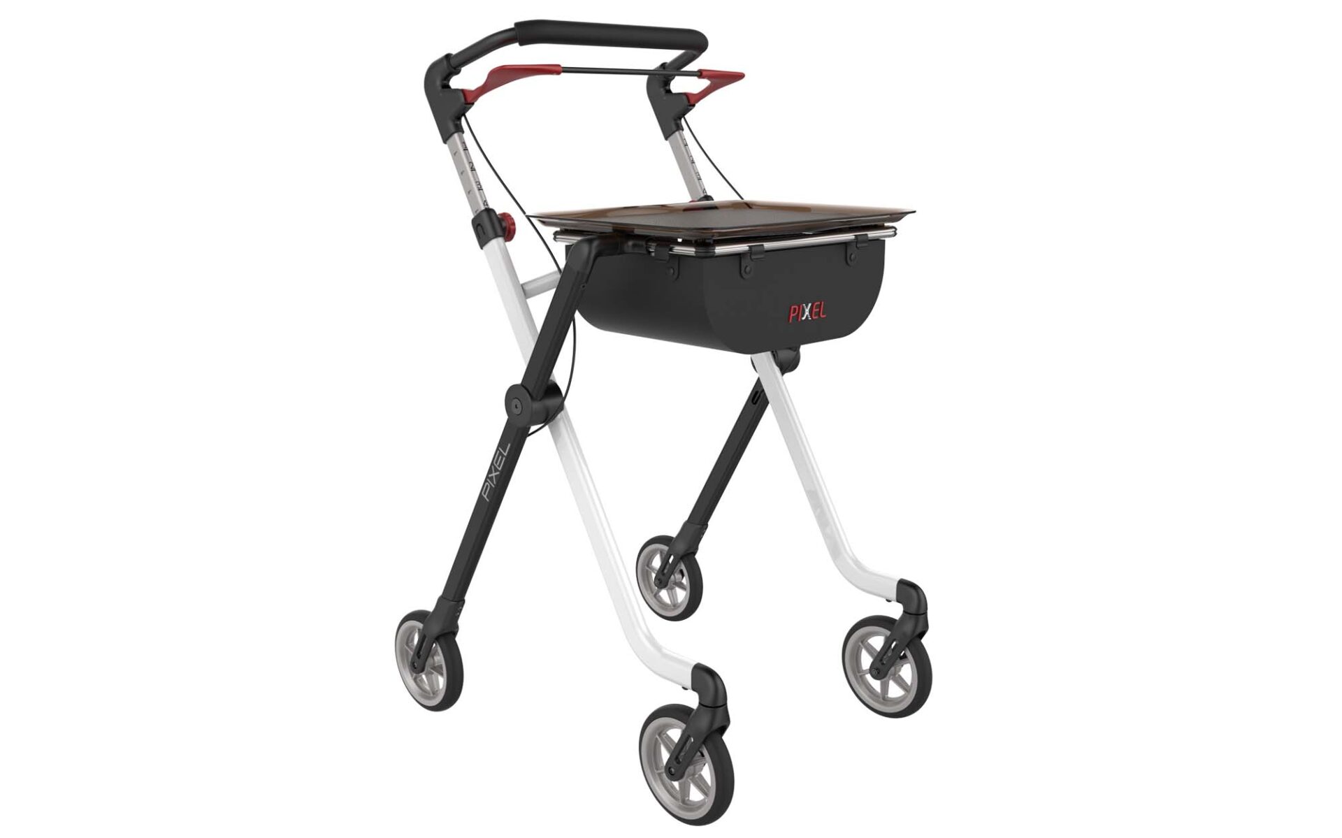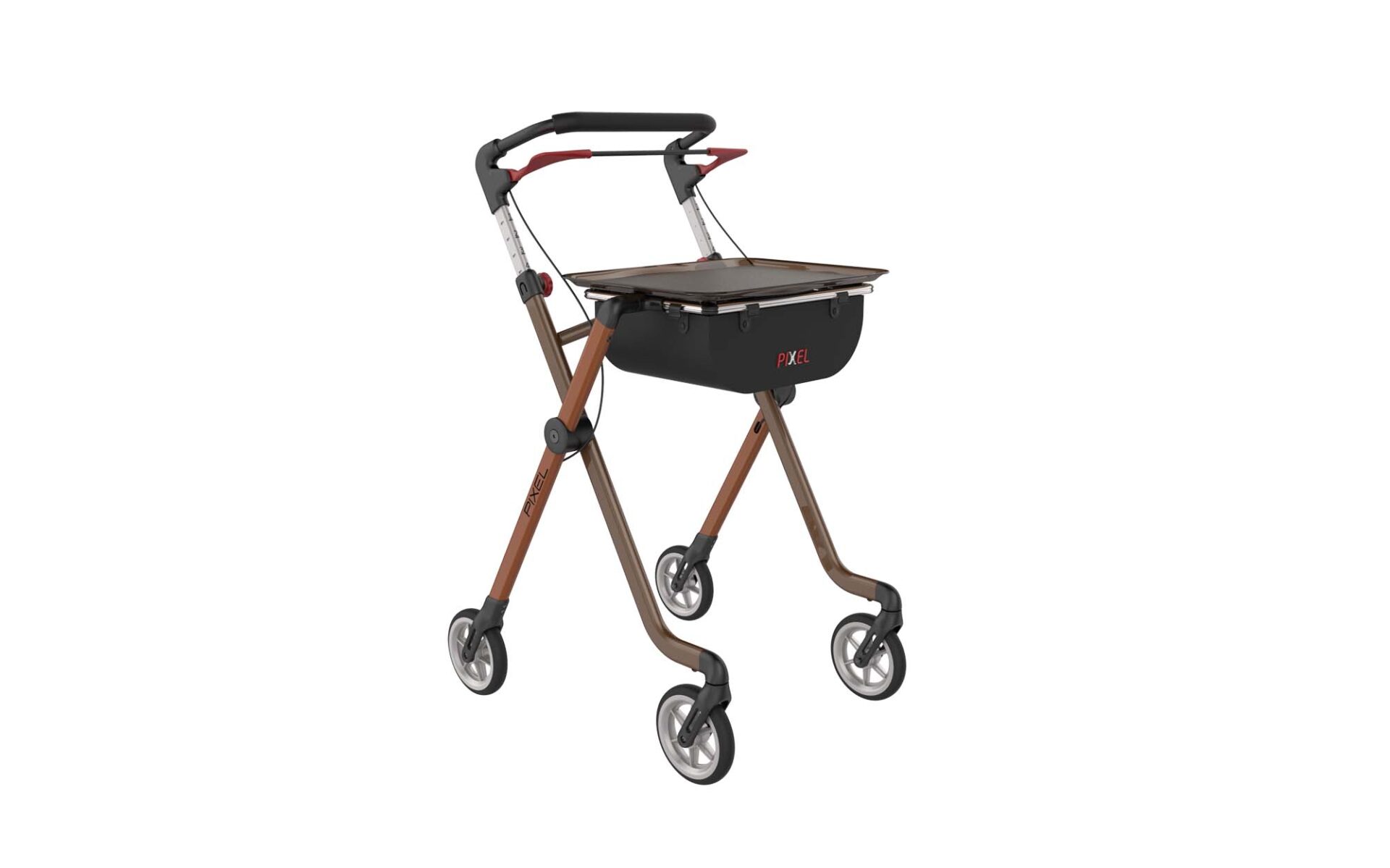 De vorm van het frame maakt het mogelijk om de Space-I binnenhuisrollator dicht bij de stoel, de bank of het bed te zetten en zo te gebruiken als bijzettafel.