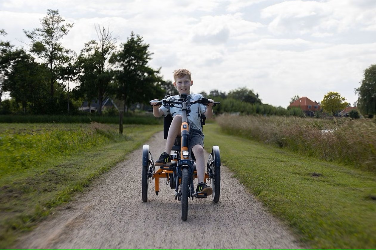 De Van Raam Easy Rider Compact Small comfortabele driewieler is speciaal ontwikkeld voor kinderen die moeite hebben met stabiliteit. Deze stoere en vlotte driewieler met een lage instap heeft een zitting met rugleuning en geeft daardoor meer ondersteuning dan een fiets met een gewoon zadel.
