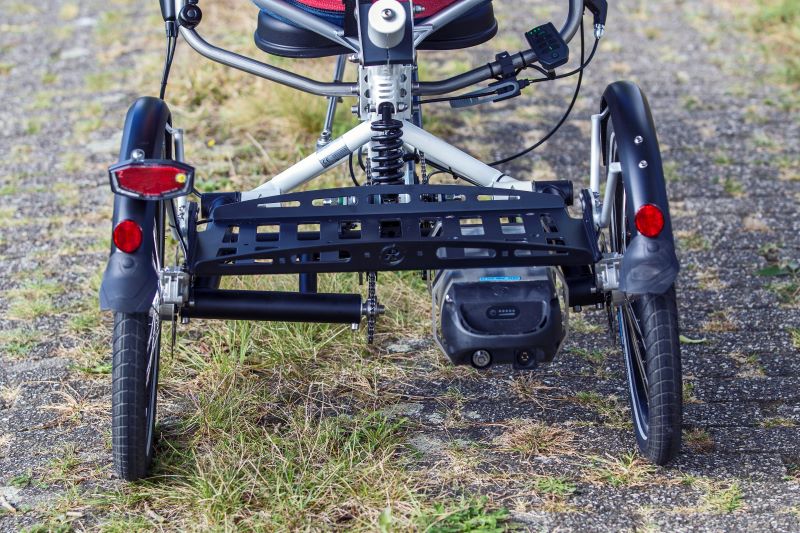 De ergonomische zitting, waarbij de zithoogte en de zithoek instelbaar zijn, zorgt voor optimale ondersteuning. De vering in het frame garandeert extra comfort. De fietshouding met het stuur onder geeft veel minder belasting van de rug, nek, schouders en polsen. De variabel in te stellen lengte met de keuze uit verschillende opties zorgt voor een naar jouw wens aan te passen driewiel ligfiets.