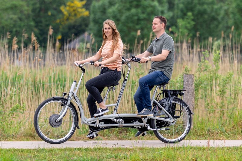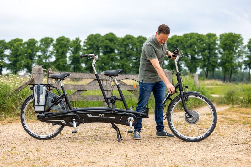 Omdat wij elke fiets uniek produceren kun je de framehoogte voor en achter naar eigen wens laten aanpassen. Met een elektromotor heb je een comfortabele trapondersteuning die het fietsen op deze tandem nog veel makkelijker maakt.